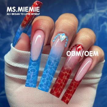 Sra. Miemie 24 piezas Ultra largo ataúd ABS prensa clavos INS diamantes brillantes rojo azul degradado océano burbujas diseño reutilizable