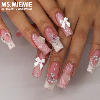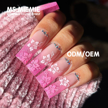 Ms.Miemie 24PCs Ultra Long ABS Press Nails INS Style 3D Cherry Blossom Pink Gradient Reutilizable al por mayor