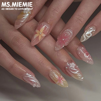 मिमी फ्रेंच नाखून कला बादाम शीमीरिंग पाउडर मोती सोने की सीमा मीठे इन शैली हस्तनिर्मित नाखून प्रेस