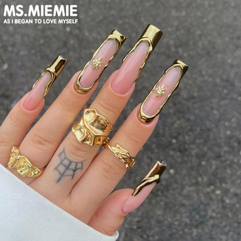 MS. miemie 24-Piece ABS tối giản pháp Sao ống nước móng tay 3D Kim Cương Phong cách áo giáp mặc giả móng tay cho ngón tay